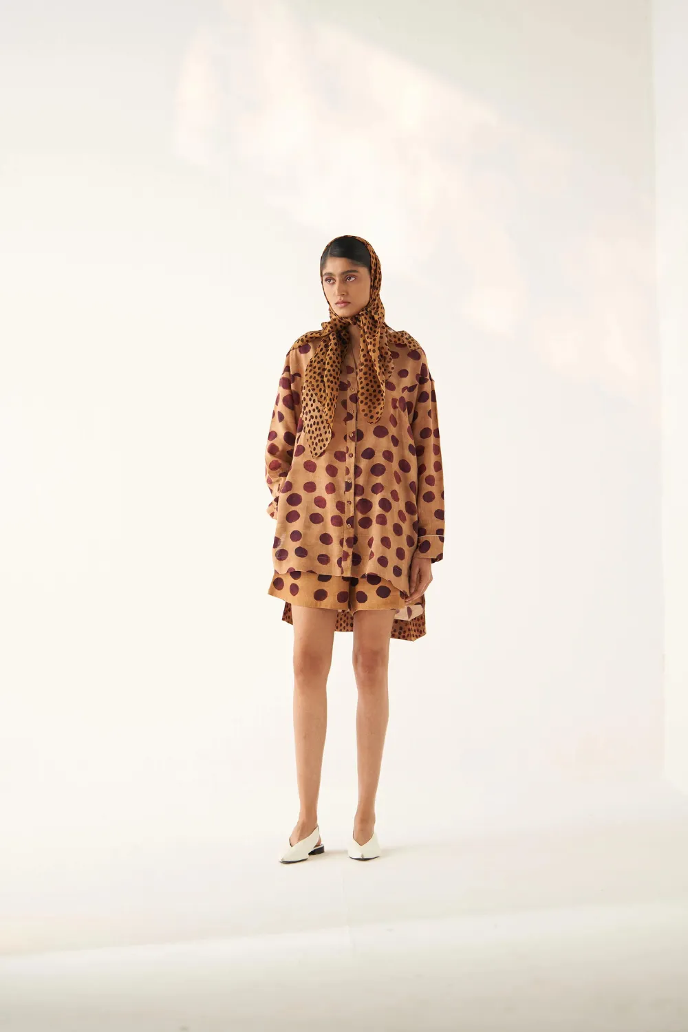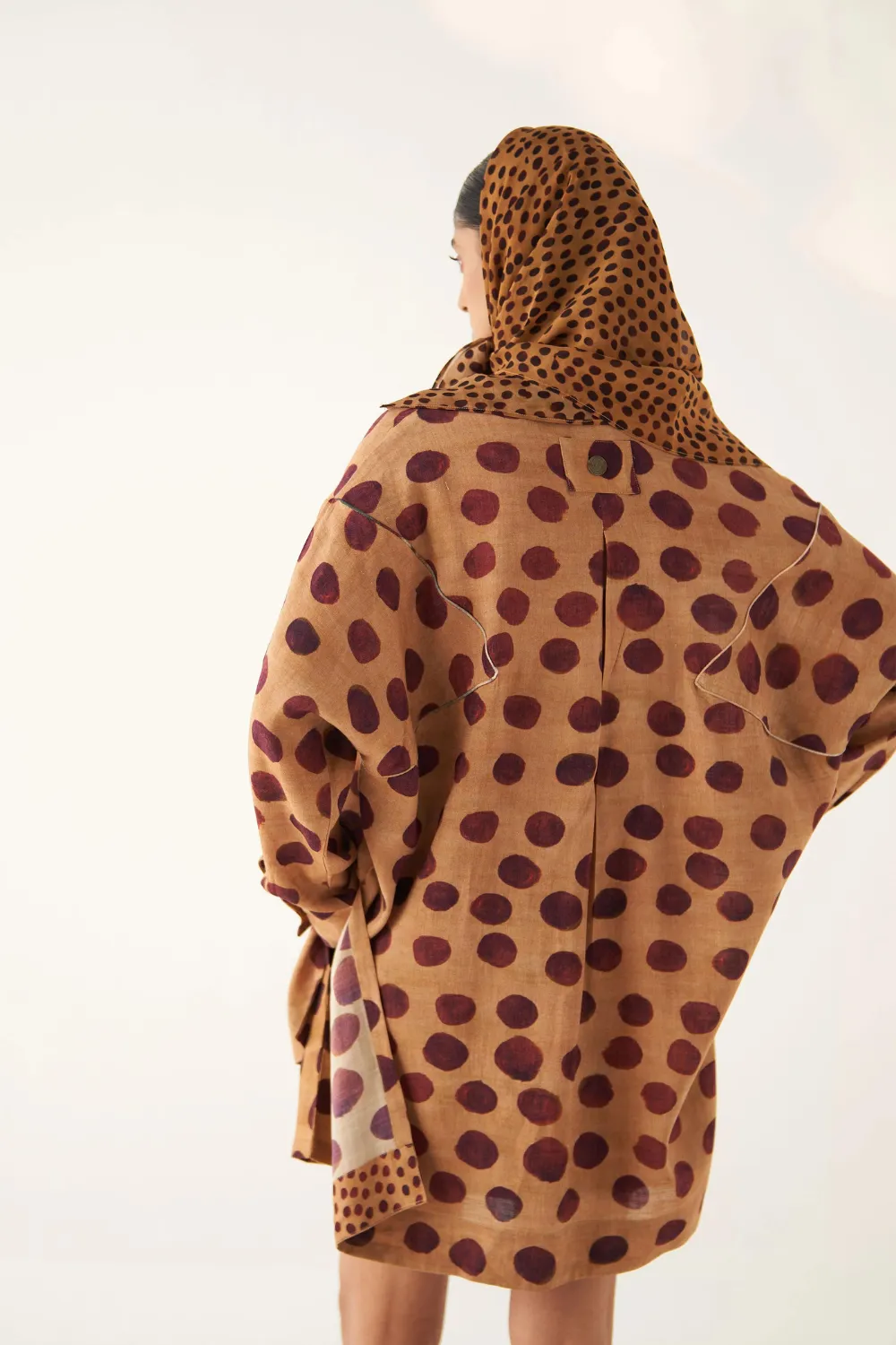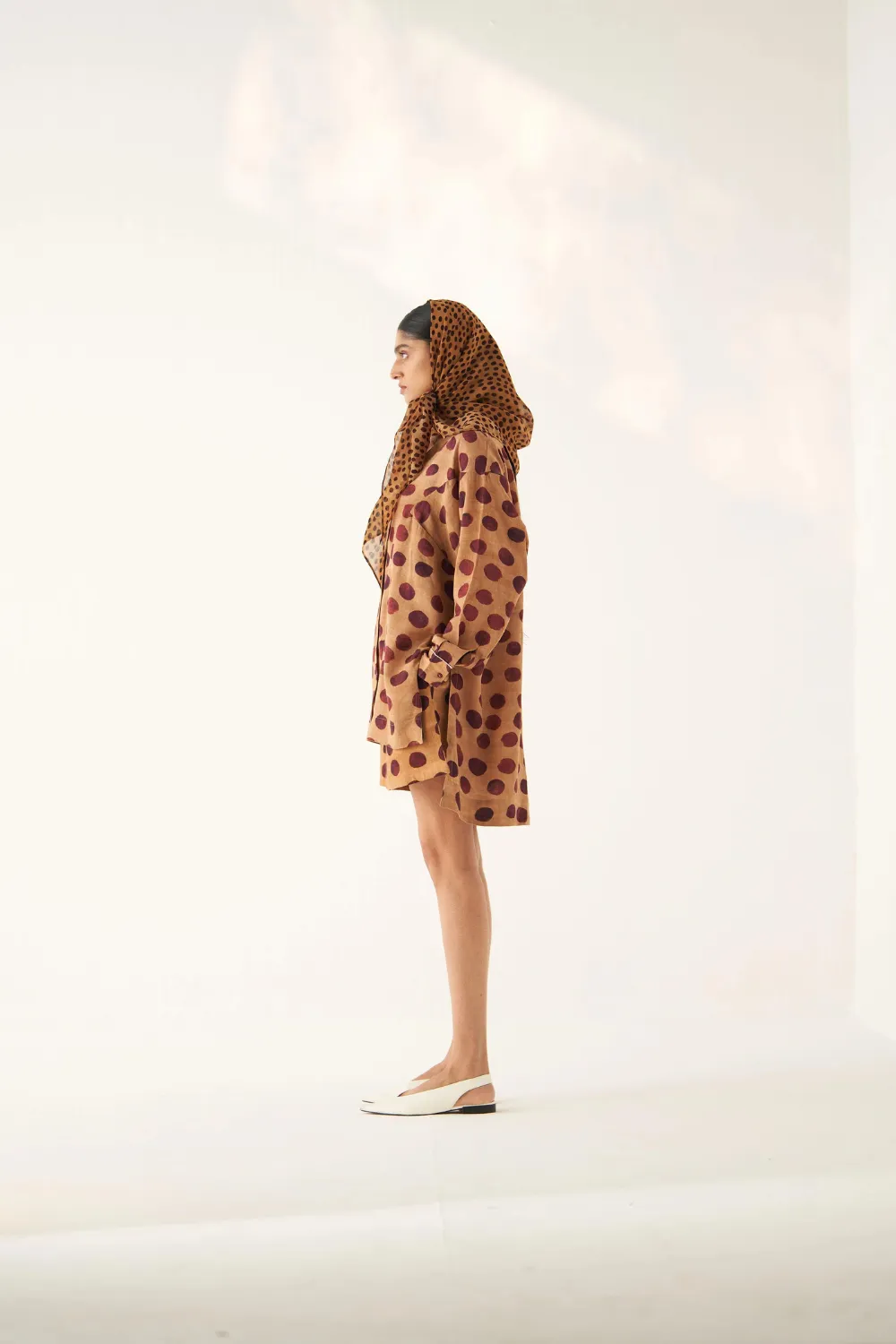 GOT Certified Azo-free dyes, Anti-Fit,Hand-painted abstract expressionist digitally transferred print, Raglan sleeves, Cuff insert, Center back inverted box pleat, High- Low length, Hand-embossed vintage Indian coin detail.