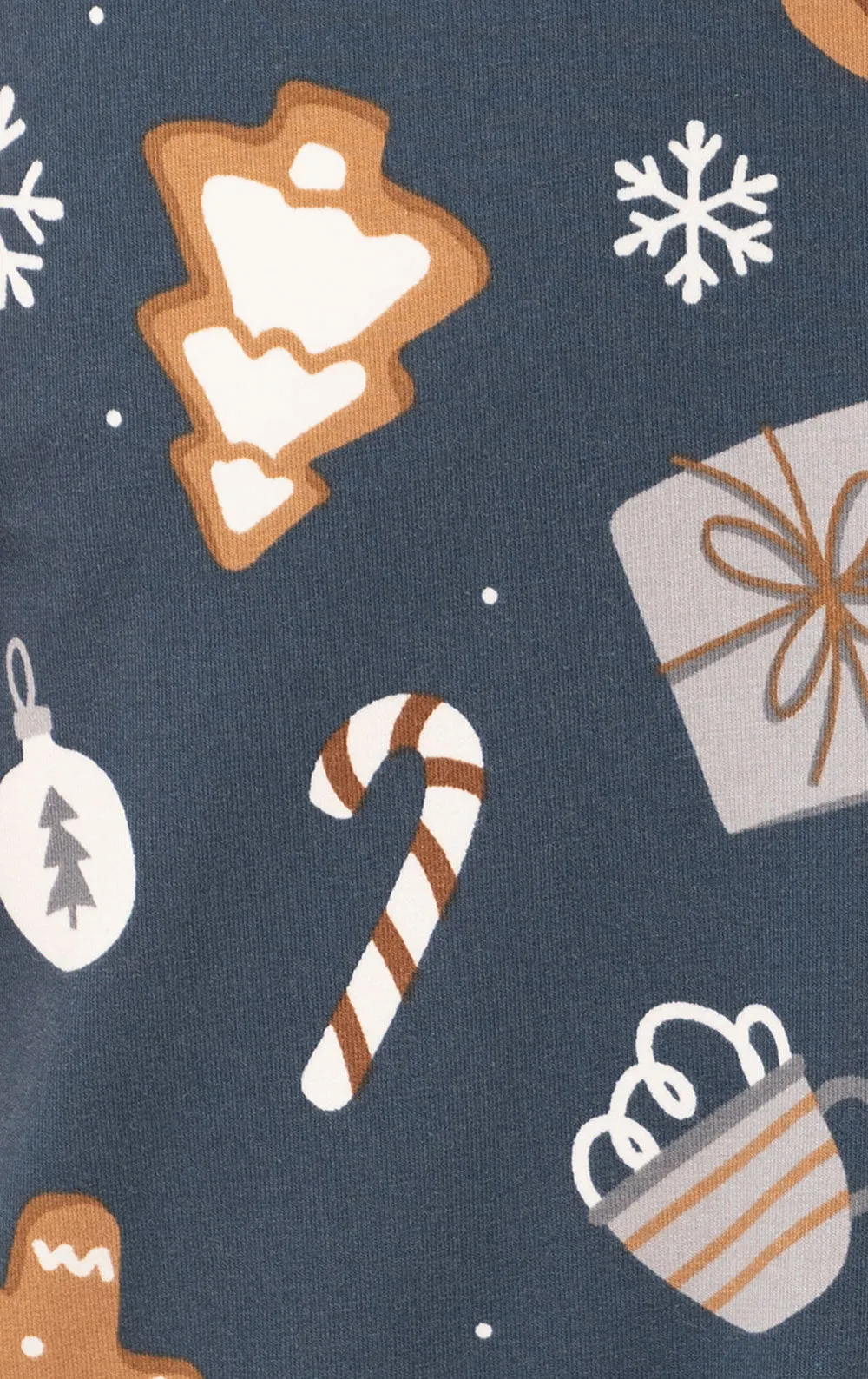 Our Sweet Comforts Henley Pajamas make relaxing and enjoying life's quieter pleasures extra cozy. Featuring a premium, stretch cotton, this set includes a henley neckline, curved hem, long sleeve top and drawstring, and elastic waistband pants with pockets. Complete with a pattern of gingerbread men, candy, presents, and more, these pajamas are the epitome of sweet, sweet comforts.