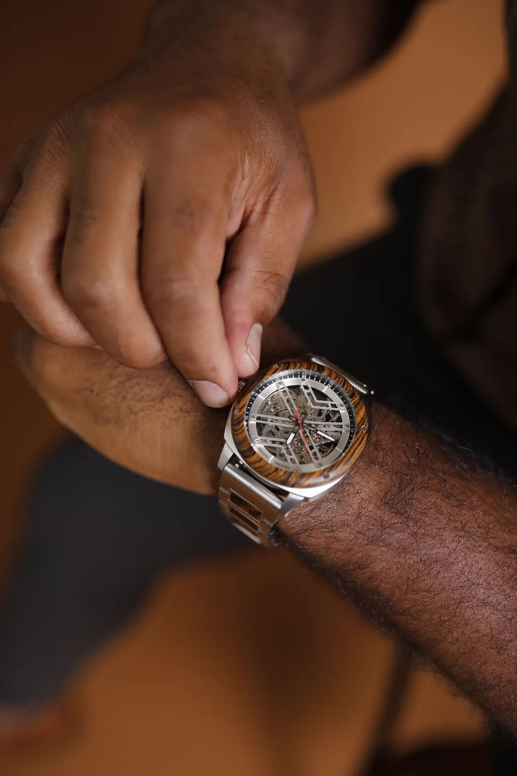 Meticulous. Striking. Elaborate. Like his owner, The Charles is the perfect timepiece for the man who knows exactly what he wants. His steps are ordered as he's disciplined in his domain and respected for his exquisite taste. This mechanical, automatic-self-wind watch for the modern gentleman features a generous 45mm luxury skeleton build.