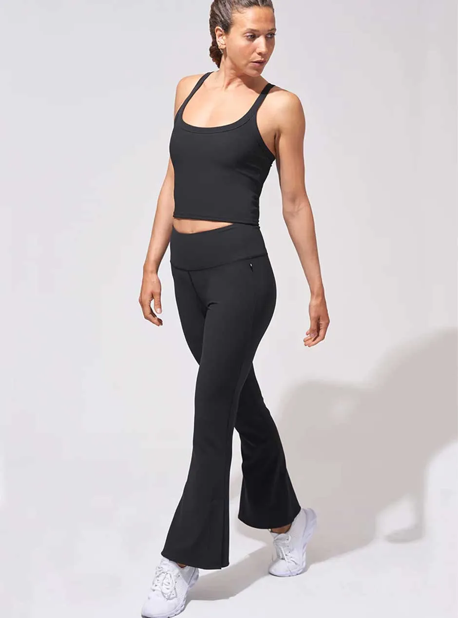 Made from Refine, a medium rib compression fabric, these flare leggings offer optimal support and breathability, keeping you comfortable and confident throughout your most dynamic workouts. The wide waistband with a hidden stash pocket allows you to keep your essentials close and your look sleek.