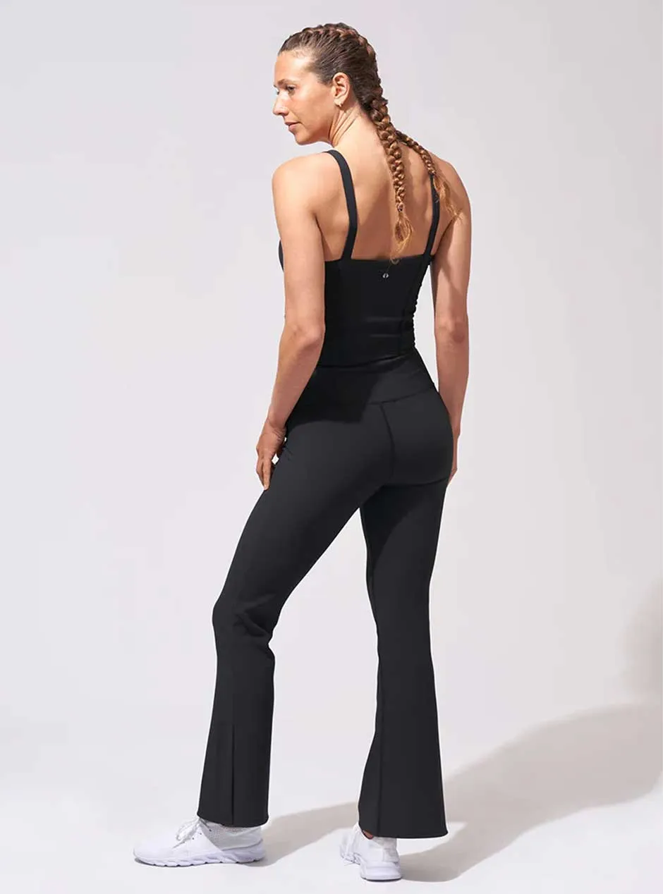 Move freely and look fantastic in the Side Slit Flare Legging, which seamlessly combines fashionable flared design with great functionality. With a high-waist style, these leggings fit your body snugly to the knee and then widen elegantly into a flare shape that makes your legs appear longer and brings an element of excitement to your exercise clothes.