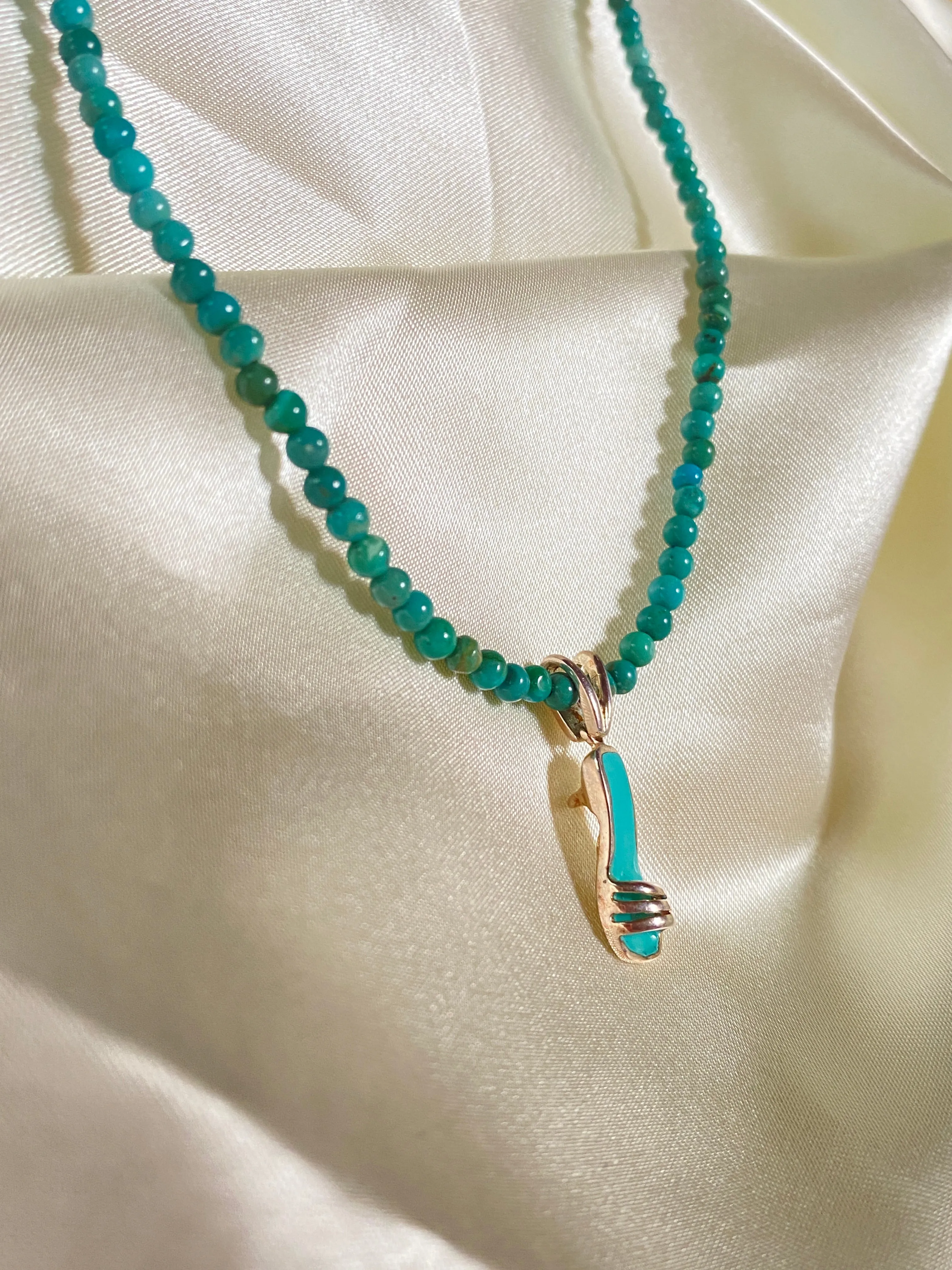 Materials: Sterling Silver Handmade Enamel Charm, Sterling Silver Extension, Sterling Silver Lobster Lock, Turquoise Beads