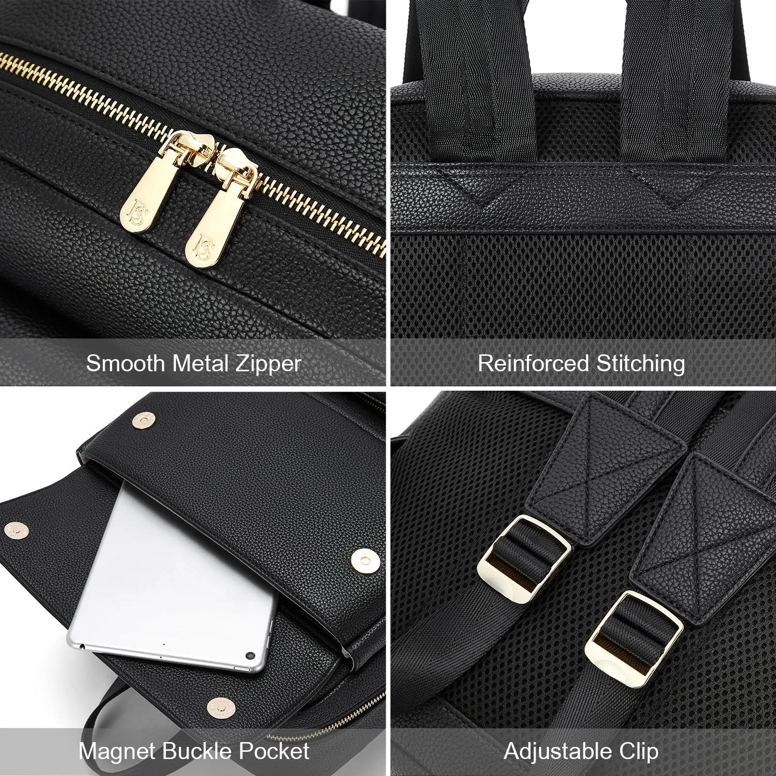 - HIGH-QUALITY LEATHER: The laptop backpack women is made of quality PU leather, stand wear and tear polyester lining, and golden hardware making this backpack more luxurious and elegant. Top U zippers for your convenience to get your computer in and out. Adjustable shoulder straps are comfortable and won't dig into your shoulder.
