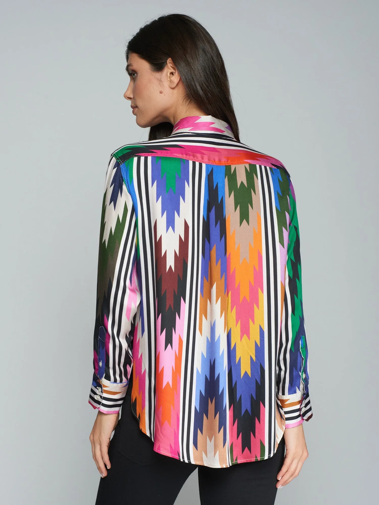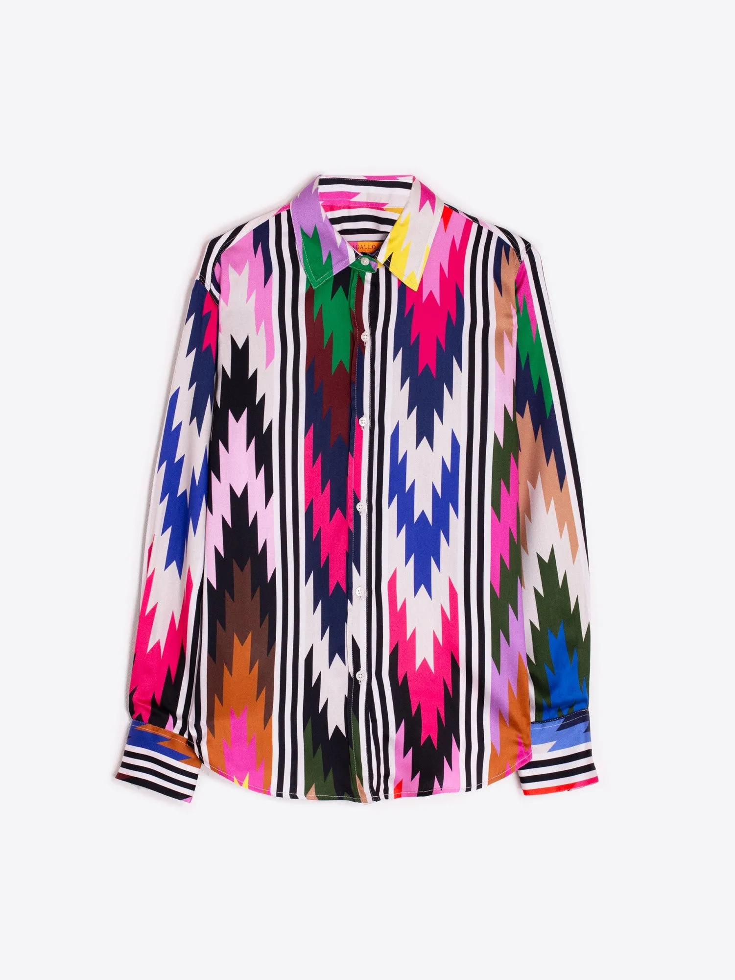 Make a bold statement with the Vilagallo Multicolour Navajo Print Shirt. Featuring an eye-catching Navajo-inspired print, crafted in Italy, this shirt adds a vibrant touch to any wardrobe. It’s designed with a front button closure and long sleeves finished with cuffs, offering both style and sophistication for any occasion.