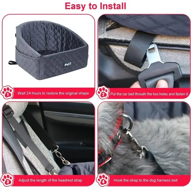 Our washable dog booster seat can be installed in any car and will give your pet a safe and comfortable place to be.