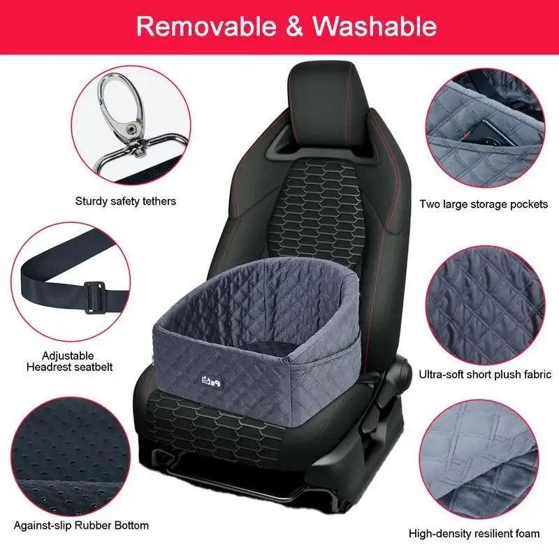 This booster seat is specially developed for small dogs to give them a comfortable and safe space during traveling and minimize stress.