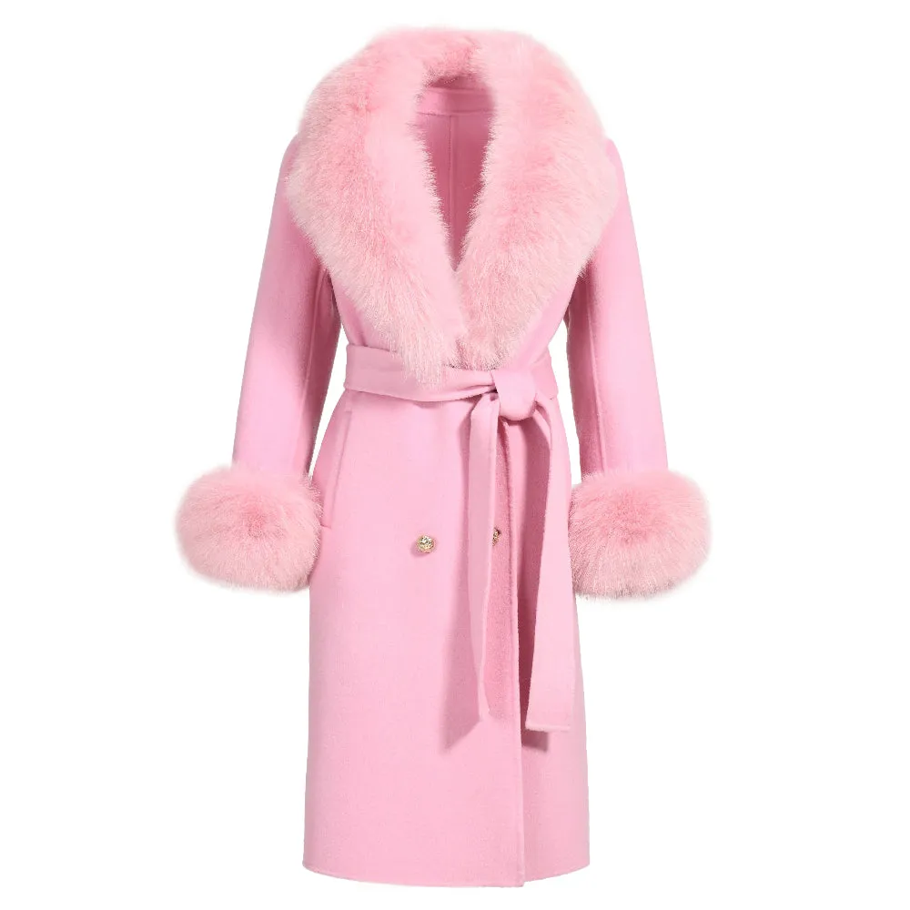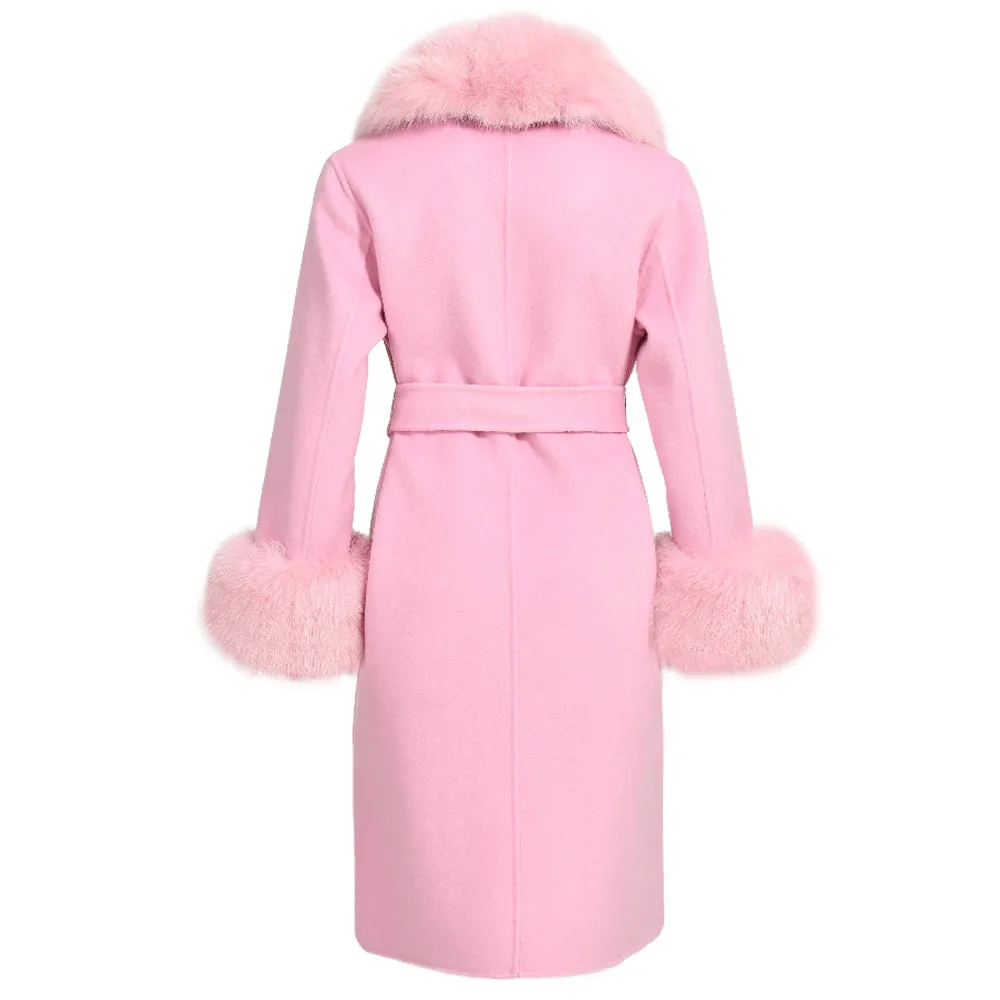 Elevate your style with this timeless silhouette of the 'Sorelle' Cashmere coat. Crafted of premium cashmere, its mid-length, slim-fitted design features luxury detachable fur cuffs for an elegant look. A tie waist and double-breasted button front creates a stunning and flattering shape. Make it yours today and feel the luxury of cashmere.